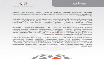 كافة الحقوق محفوظة © 2026 الجمعية اليمنية للاعلام الرياضي برمجة وتطوير الإستضافة اليمنية